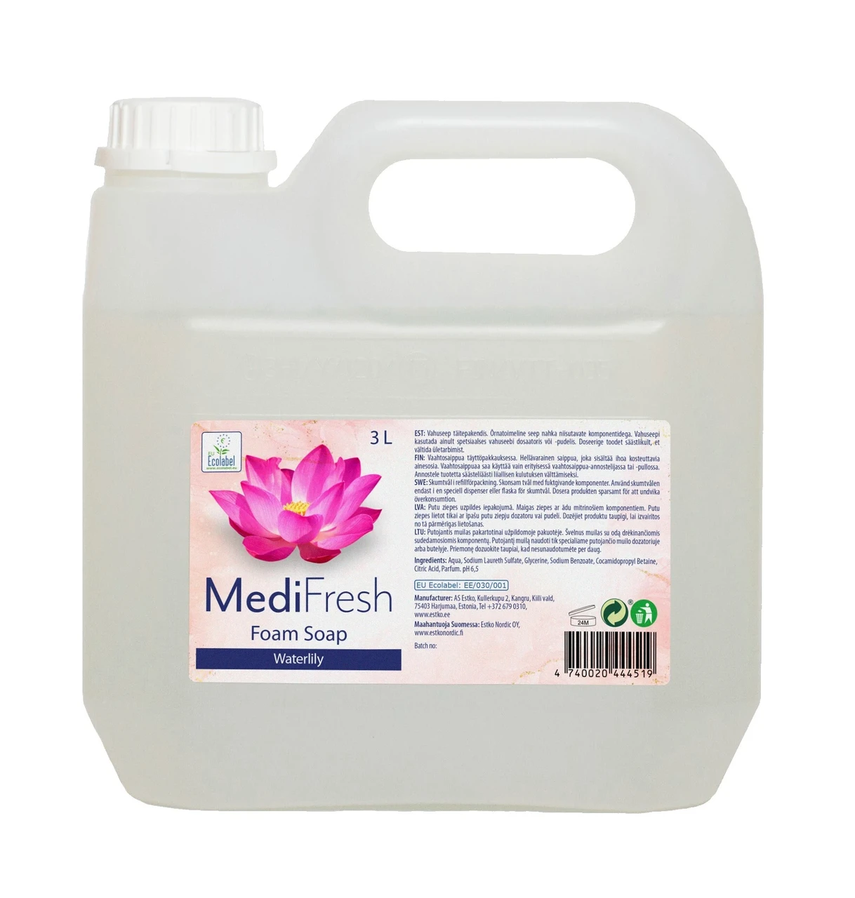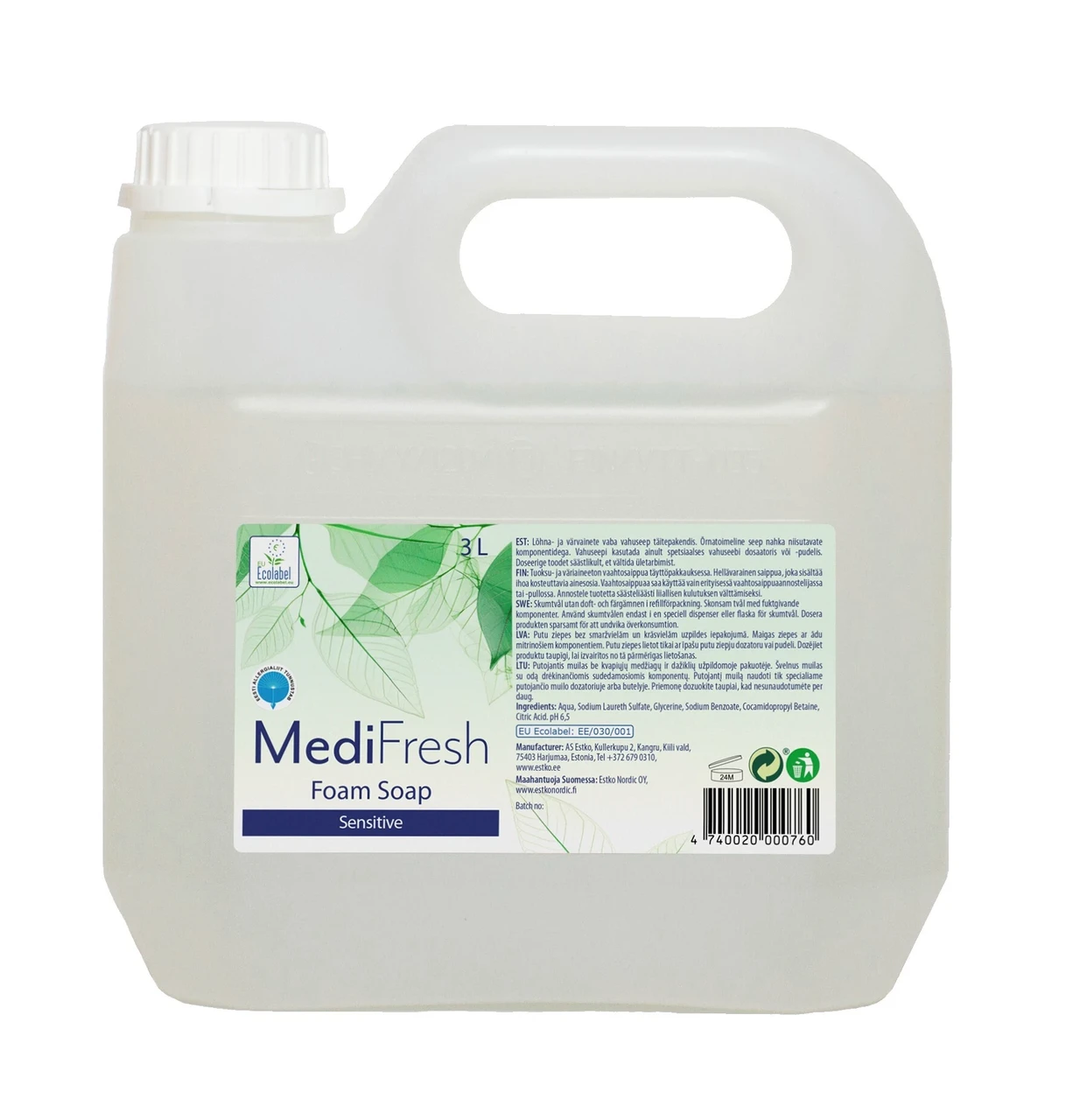 Tuoksu-ja väriaineeton vaahtosaippua. Hellävarainen saippua, joka sisältää ihoa kosteuttavia ainesosia.